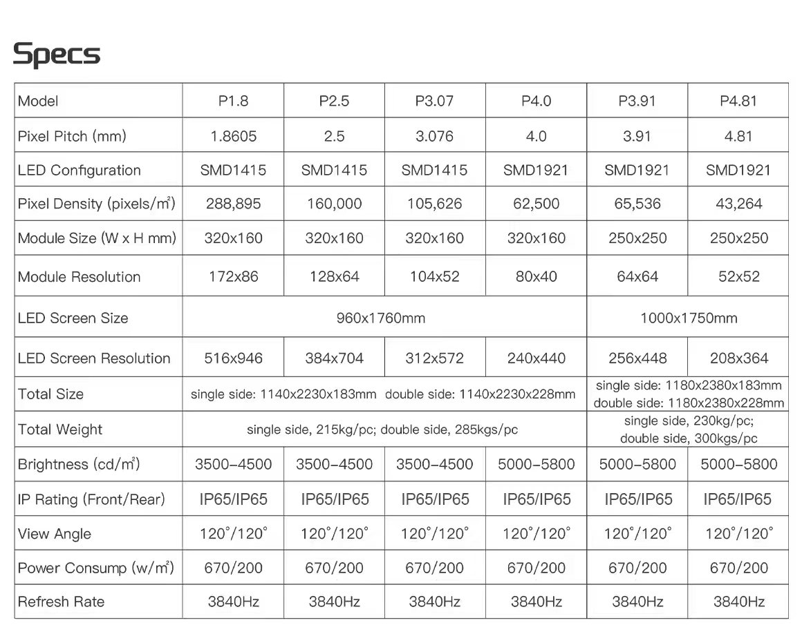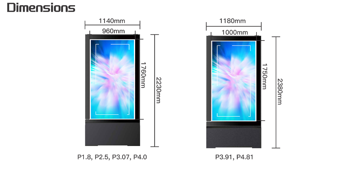 Outdoor LED Kiosk P1.8 , P2.5 , P3.076 , P4, P3.91, P4.81 Single and double sided IP65 Rating